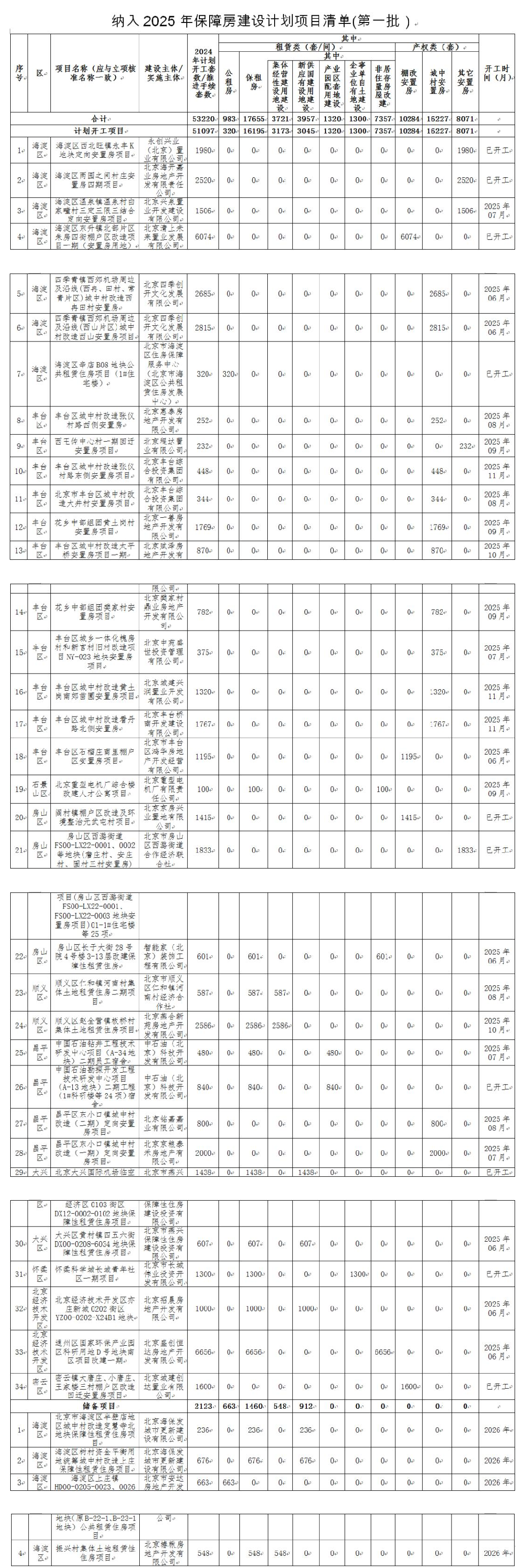 (2025年保障房竣工計劃項目清單(第一批),圖源:北京市住建委)