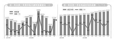 “除去技術層面的原因,6-7月北京二手房市場的整體趨勢仍然是‘降溫’?!眰I(yè)我愛我家集團副總裁胡景暉分析,從6、7月的整體交易量來看,北京全市二手住宅網簽量僅為36079套,與4、5月的網簽總量相比下跌了28.3%,跌幅近三成。6、7月的月均網簽量僅有1.8萬套,也明顯低于3月以來的月度網簽量。逐步降溫仍是北京二手房市場交易量在3月觸頂后的大趨勢。