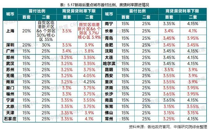 “近期各地政策的步調(diào)非常一致,充分落實(shí)‘517’降首付降利率的政策導(dǎo)向,充分體現(xiàn)房貸政策雙降是近期各地‘一城一策’的重要特點(diǎn)?!币拙友芯吭貉芯靠偙O(jiān)嚴(yán)躍進(jìn)認(rèn)為,各地政策的思路和邏輯非常清晰,近期普遍會(huì)出臺(tái)首付比例調(diào)至15%、房貸利率自由定價(jià)、三套房給予最優(yōu)信貸支持等政策,全國購房首付比例普遍進(jìn)入“15%時(shí)代”。