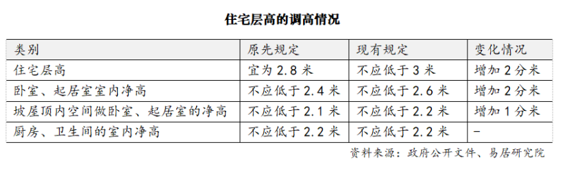 住宅層高不應(yīng)低于3米,標準顯著提高