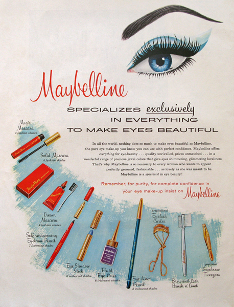 就這樣,全世界第一支Mascara(睫毛膏的英文名)的身世了,同時(shí)這也是全球第一代眼部化妝品。在1915年,Tom把妹妹名字(Mabel)和凡士林(Vaseline)的英文拼寫(xiě)組合在一起,把公司命名為美寶蓮紐約(Maybelline)。