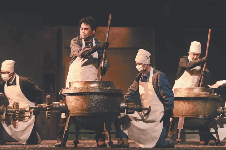 與歌劇跌宕的劇情相匹配,作曲家唐建平也創(chuàng)作了極具戲劇張力的音樂。全劇既有不少充滿挑戰(zhàn)的高音唱段,也有充滿“氛圍感”的旋律。221沒有合適的炸藥合成設(shè)備,工作人員就用人工土法攪拌,小危險不時發(fā)生,這時的音樂充滿懸疑感,緊扣心弦。唐建平還在劇中融入了當(dāng)?shù)匾魳吩兀习雸鲆魳酚刹刈迕窀枰?,下半場則由青?;▋洪_啟,而在劇中的聯(lián)歡會上,藏族風(fēng)格的音樂元素不時響起,也為梁振道與女友的意外相遇鋪墊了情緒。