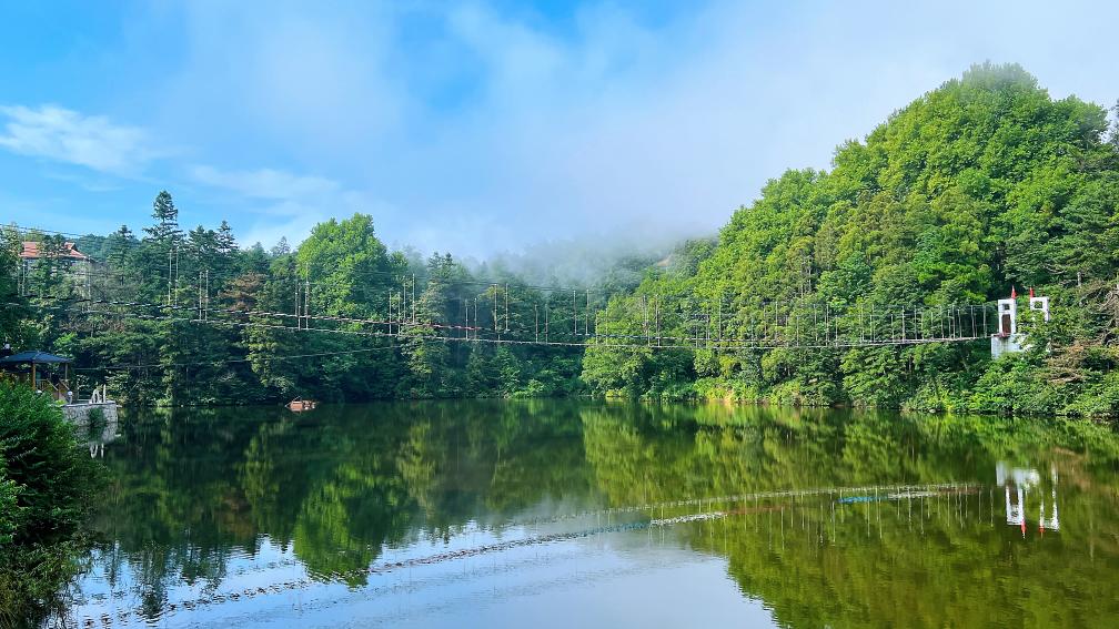 “像音符一樣蘇醒,整片天空做背景。背起行囊的這個剪影,旅程孤獨而堅定……”周六傍晚,落日余暉染紅了天空,一首《在路上》的歌曲在雞公山的萬國廣場上響起。游客們走出山間、湖邊的民宿,歡聚一堂,吹風聽歌,放松心情。從北京來此度假的韓先生說,八月的雞公山真是一個沉浸自然、吟唱詩意的美好去處。