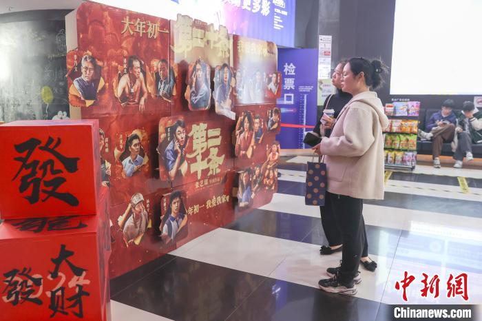 圖為江西贛州一電影院擺放的春節(jié)檔相關電影宣傳物料吸引民眾觀看。劉力鑫 攝