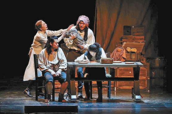 與16世紀“大航?!睍r代主題相扣,《威廉與我》的舞臺散發(fā)著復古氣息。巧妙多變的裝置設計,融合了古典與當代,既像一座微型劇場,又像一艘航行大船,還像一頂恢宏皇冠,也像一處囚籠刑場。劇中四位優(yōu)秀演員,以幽默詼諧、靈氣詩意、舉重若輕、跳進跳出的表演和身份轉換,分別扮演莎士比亞的童年、青年、中年、老年和其他30多個角色,在有限的時空中,用無限的想象力和表現(xiàn)力,將這位傳奇劇作家一生中的重要事件及作品創(chuàng)作情況串聯(lián)起來,演繹出他所處時代的風云變幻及其動蕩漂泊的復雜一生。
