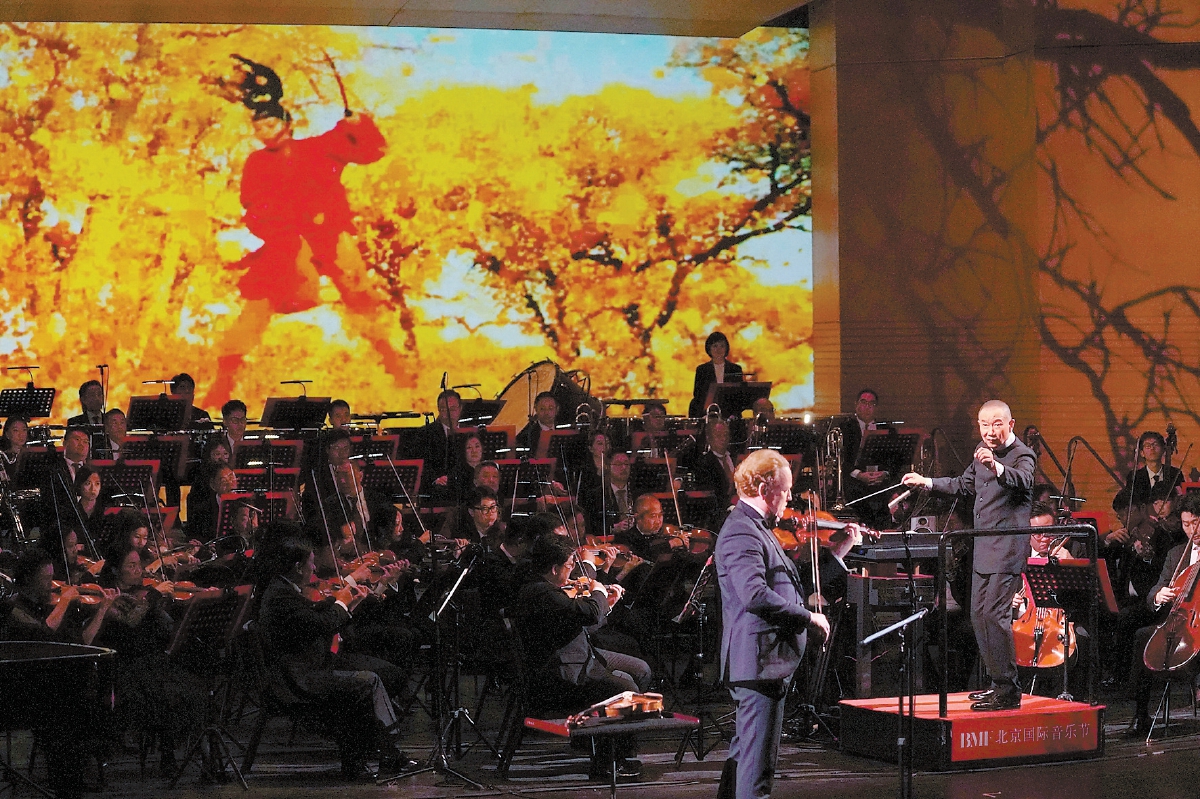 譚盾指揮《武俠三部曲》交響音樂會(huì)劇照。北京日報(bào)記者 方非攝