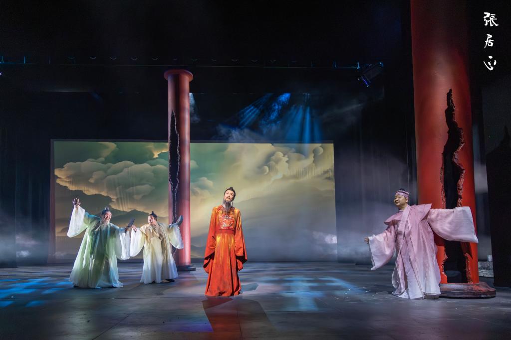 話劇改變了小說原有架構(gòu),用現(xiàn)實(shí)與非現(xiàn)實(shí)的三條線索并行交替敘事:一條線索以張居正人生中擔(dān)任首輔的重要事件為節(jié)點(diǎn),串聯(lián)起他的改革之路;一條線索展開他的身后思索,打通現(xiàn)實(shí)與想象;第三條線索則讓成年與少年的萬歷皇帝跨越時(shí)空對話。
