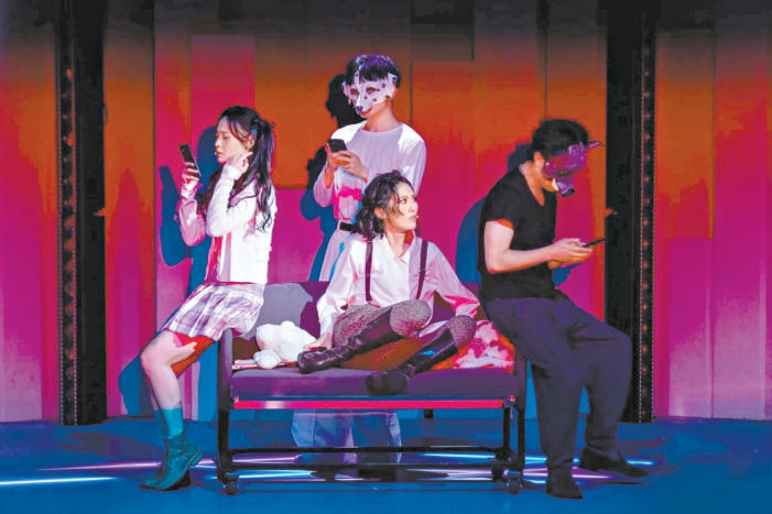 劇中人物的復(fù)雜性突破了非黑即白的框架:林嘉怡既是堅守藝術(shù)理想的創(chuàng)作者,也是被輿論反噬的受害者;李夢既是狂熱的追星少女,也是網(wǎng)暴的犧牲品;主編姜大海既是資本的傀儡,也是被時代裹挾的可憐蟲。四位優(yōu)秀演員每人都分飾多角,在作家、粉絲、主編、偵探等角色間自由切換,用聲線、肢體、表情的微妙變化完成身份轉(zhuǎn)換。這種角色輪換的設(shè)計,精準(zhǔn)揭示了網(wǎng)絡(luò)暴力“人人皆可成為加害者”的殘酷現(xiàn)實。正如劇中歌詞所唱:“這是一樁沒有兇手的謀殺案,但每個人都是兇手?!碑?dāng)觀眾看到同一演員前一秒還在飾演施暴的鍵盤俠,下一秒?yún)s化身無助的受害者時,對暴力循環(huán)的認(rèn)知便從理性理解升華為情感共鳴。