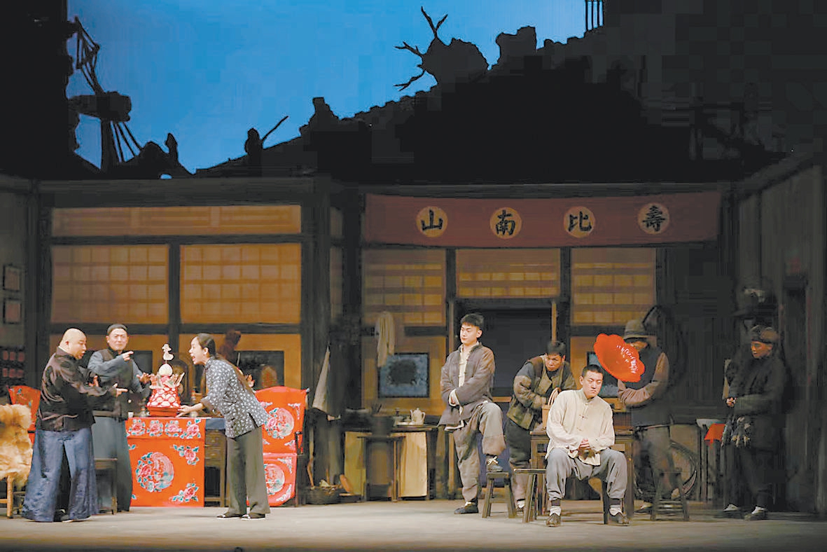 舞臺遠處,老北京城門樓子的剪影橫亙天際;近處,木窗灰墻圍起一間極有年代感的平房;平房里,虎妞正在和父親劉四爺爭吵——這段經(jīng)典劇情出自家喻戶曉的《駱駝祥子》。