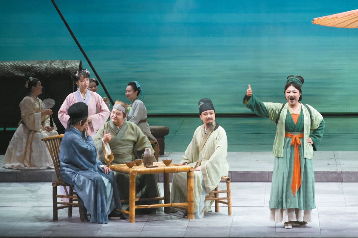 編劇曹路生借用清代李漁“立主腦、減頭緒、密針線”的創(chuàng)作理念大刀闊斧重構(gòu)敘事,刪減十余個(gè)支線人物,將敘事重心聚焦于趙盼兒、宋引章、孫三娘三位女性從錢塘到汴京的創(chuàng)業(yè)歷程。既延續(xù)關(guān)漢卿元雜劇《趙盼兒風(fēng)月救風(fēng)塵》的精神內(nèi)核,又汲取電視劇對(duì)女性情誼的現(xiàn)代詮釋,通過歌劇獨(dú)有的抒情性與戲劇張力,展現(xiàn)了中國(guó)女性“自尊、自愛、自立、自強(qiáng)”的精神內(nèi)核。導(dǎo)演蔣維國(guó)以“宋式美學(xué)的歌劇化重構(gòu)”為核心,巧妙調(diào)度舞臺(tái),演員舉手投足間皆融入宋畫的“日常優(yōu)雅”,將影視IP的動(dòng)人故事升華為具有普適價(jià)值的歌劇藝術(shù)表達(dá)。