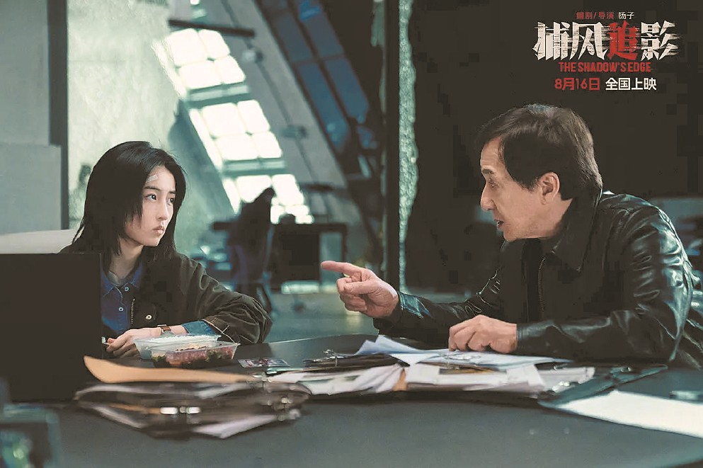 張子楓與成龍的對手戲被稱為“《成龍歷險記》真人版”:“像極了變老后的龍叔帶著長大的小玉破案”。圖為《捕風追影》劇照。