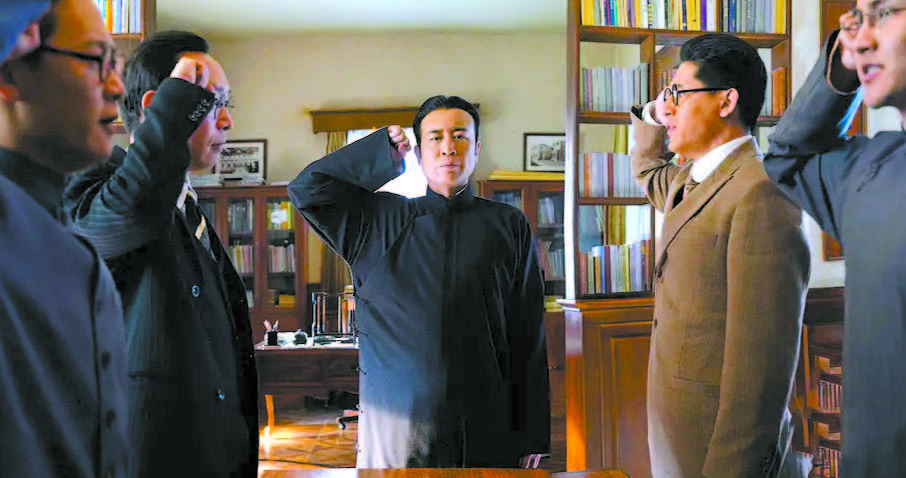 在《覺醒年代》的獄中戲里,陳獨(dú)秀聽聞學(xué)生言論后,先是做了一個(gè)看似悲痛的表情,隨即用手掩面卻發(fā)出笑聲,瞬間吸引了全體學(xué)生的注意,緊緊抓住全場(chǎng)的戲劇焦點(diǎn)。繼而,他雙目放光地大笑起來,雙手插兜向監(jiān)獄門口走去。動(dòng)作的加入讓這層“笑”的能量再次升級(jí)。站在監(jiān)獄門口,他做了一個(gè)反常規(guī)的動(dòng)作——用手來回拉拽監(jiān)獄的鐵門,身體被這個(gè)動(dòng)作牽引著,發(fā)出了更為豪爽的“大笑”,與鐵門拖拽的“吱吱”聲形成獨(dú)特的交響。此時(shí),陳先生才指著學(xué)生們說道:“你們不是一般的自大?。 鄙袂橹胁o刻板的指責(zé),而是一種混雜著嘲弄、心疼與從容的復(fù)雜意味。這種多義的面部表情處理,承載了更為豐富的“只可意會(huì),不可言傳”的信息量。觀眾至此方悟,于和偉這一系列反常動(dòng)作的設(shè)計(jì)用意,是通過陳獨(dú)秀覺得學(xué)生行為“幼稚得可笑”,來反襯他內(nèi)心的強(qiáng)大,體現(xiàn)其對(duì)革命道路艱巨性的清醒認(rèn)知。他敢于創(chuàng)造不按常理出牌的動(dòng)作,最終總能將情緒準(zhǔn)確傳達(dá),以一人之能量瞬間與眾多對(duì)手“拔河”,并讓學(xué)生們心甘情愿地走出監(jiān)獄。這正是他“情理之中,意料之外”的角色自由創(chuàng)造的體現(xiàn)。