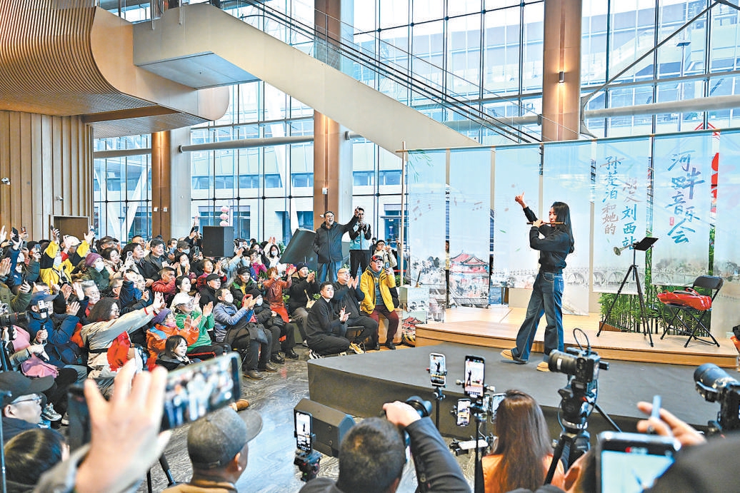 “國民閨女”、青年笛簫演奏家孫楚泊在北京大運河博物館演出。