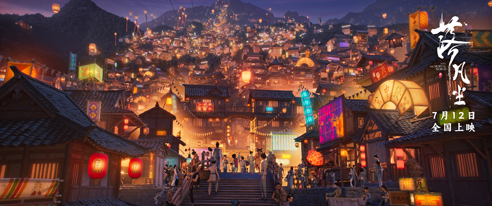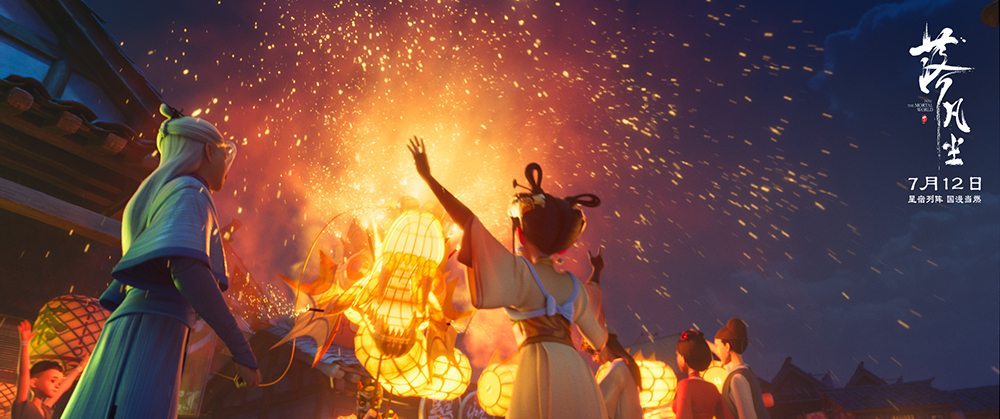 在以往的國漫創(chuàng)作中,親情并不是最普遍的故事主題。作為對比,在好萊塢成熟的合家歡動漫體系中,家庭主題一直是其永恒的創(chuàng)作重點?!堵浞矇m》的創(chuàng)新之處在于,將親情故事和傳統(tǒng)的神話做了結(jié)合,讓東方的親情主題融入到一個東方故事之中,讓觀眾在緊張的冒險故事中獲得啟發(fā),也讓國漫找到了親情主題的巧妙支點。 為了承載這個新穎的東方故事,電影還大膽了建構(gòu)了一個宏大的神話世界觀,無論是織女的身份與法寶設(shè)計,還是首次登上大銀幕的二十八星宿,都參考了中國的傳統(tǒng)神話,又做了大膽的創(chuàng)新。比如,在故事設(shè)定中,神界和凡界由天幕織連。這讓觀眾在觀看電影時,能夠感覺到故事設(shè)定的新鮮感。 在表現(xiàn)凡間世界時,電影也體現(xiàn)一種新中式美學(xué)。《落凡塵》以中國宋代歷史風(fēng)貌為基礎(chǔ),對繁華的人間進行了生動的描繪,而且還加入了不少具有現(xiàn)代生活色彩的元素,讓觀眾既能感受到傳統(tǒng)文化風(fēng)格,也能夠感受到當代生活理念。