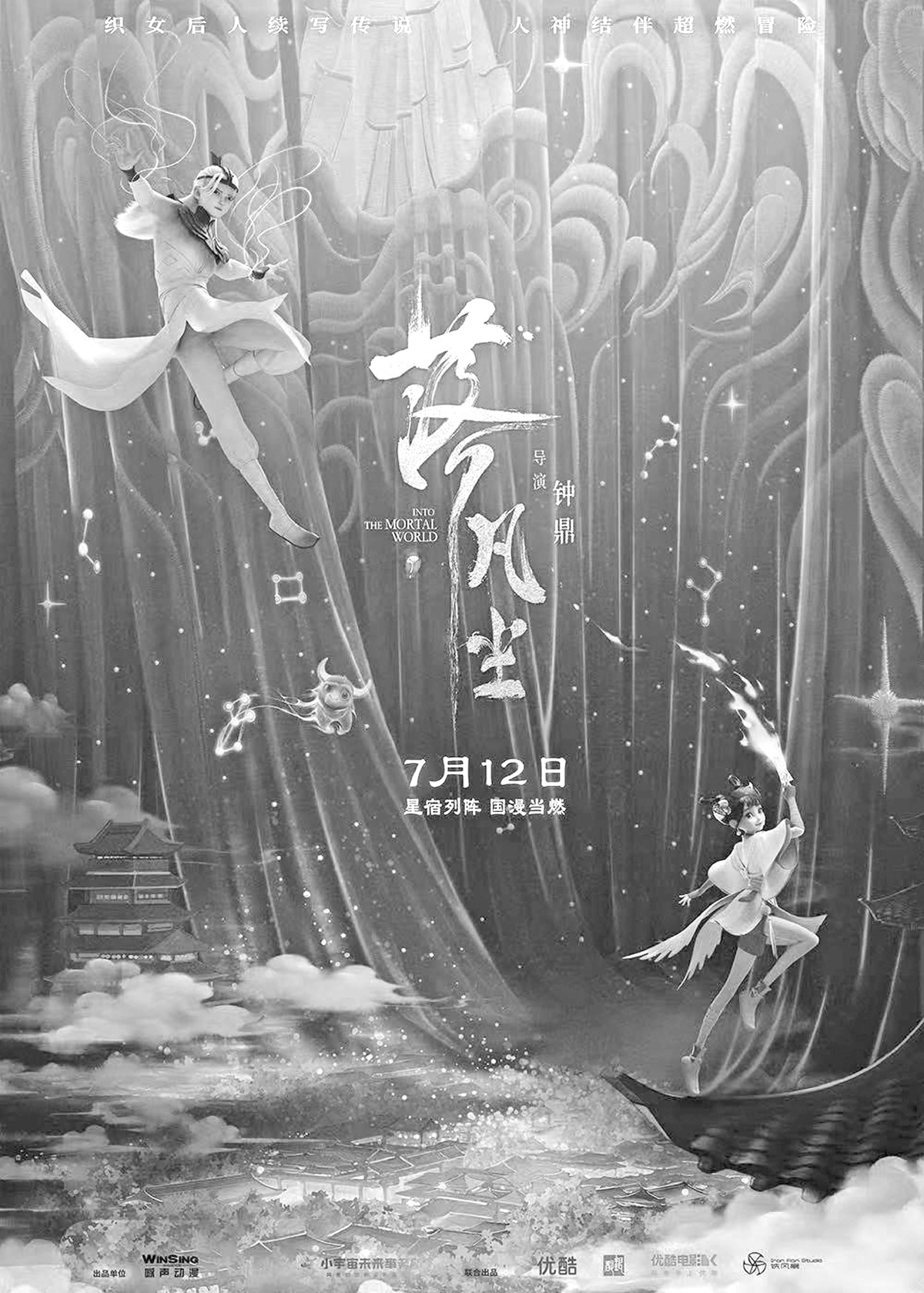 ▲導(dǎo)演鐘鼎 故事 加入了二十八星宿 神話元素 《落凡塵》基于牛郎織女民間傳說改編,講述了織女后人金風(fēng)下凡收服星宿,意外結(jié)識(shí)少女小凡,一人一神達(dá)成“收星”聯(lián)盟,攜手開啟一場(chǎng)高燃人間冒險(xiǎn)的故事。 導(dǎo)演、廣州美術(shù)學(xué)院副教授鐘鼎告訴北京青年報(bào)記者:“5年前的暑假,我?guī)е?3名學(xué)生創(chuàng)作了畢業(yè)設(shè)計(jì)短片《落凡塵》。故事基于星宿與銀河的傳說,講述‘放星星’的神仙與頑皮妹妹之間發(fā)生的故事。那個(gè)短片是一次試水,我們當(dāng)時(shí)已經(jīng)有做院線電影的計(jì)劃。這樣做的目的,是希望學(xué)生們辛苦耕耘一年的作品不僅僅停留在畢業(yè)展播的那一晚上的高光時(shí)刻,不愿意看到大學(xué)畢業(yè)后這些作品從此束之高閣,僅僅只是一份回憶。我更加愿意看到這些奇思妙想、瑰麗多彩的內(nèi)容能夠開花結(jié)果?!?/p> 電影《落凡塵》在短片基礎(chǔ)上進(jìn)行劇情擴(kuò)容,融入了二十八星宿的神話元素,首次將這一概念搬上大銀幕,還進(jìn)行了“牛郎織女神話故事新編”。鐘鼎表示,這相當(dāng)于一個(gè)全新的原創(chuàng)故事,“以往的民間傳說中,牛郎織女并沒有太多延展。而在《落凡塵》中,金風(fēng)玉露這對(duì)兄妹不僅追溯了母親身份,而且凸顯出了電影親情的主題。此外,織女的形象也得到了創(chuàng)新性的改編,不再是傳統(tǒng)故事中被動(dòng)等待愛情的形象,而是變成了一個(gè)心懷蒼生的女性?!?/p> 主創(chuàng) 當(dāng)年參與的學(xué)生 由13人變?yōu)?人 當(dāng)時(shí)參與畢業(yè)設(shè)計(jì)項(xiàng)目的13名同學(xué)在畢業(yè)后各奔東西,其中3名同學(xué)選擇留在項(xiàng)目里,繼承了《落凡塵》的“DNA”。鐘鼎說:“3名同學(xué)在電影創(chuàng)作中承擔(dān)了核心工作。此外,我們也找了很多廣州美院的資源,有15名畢業(yè)生以合作藝術(shù)家的形式參與到項(xiàng)目里;也有在校生以實(shí)習(xí)的形式參與。所以,《落凡塵》是一個(gè)有著濃厚的學(xué)院派氣質(zhì)的作品?!?/p> 對(duì)于“學(xué)院派風(fēng)格”,鐘鼎解讀道:“學(xué)院派在審美上,更純粹、更原生,更加重視文化傳播。在創(chuàng)作期間,我們來到北京,在城墻樓宇、在故宮的文化瑰寶中尋找創(chuàng)作靈感;還在廣東參觀了動(dòng)漫博物館——那里面收藏了很多開創(chuàng)中國學(xué)派先賢們的手稿原稿,他們對(duì)中國傳統(tǒng)文化的深刻演繹讓創(chuàng)作團(tuán)隊(duì)不僅深受啟發(fā),而且樹立了傳承和發(fā)揚(yáng)中國文化的堅(jiān)定意識(shí)。在后續(xù)的電影制作中,這種文化基因始終貫穿其中?!?/p> 鐘鼎表示,學(xué)院派在創(chuàng)意和審美上有一定的優(yōu)勢(shì),但在商業(yè)性和產(chǎn)業(yè)意識(shí)上可能稍顯不足,“為了彌補(bǔ)這一點(diǎn),我們?cè)谥谱鬟^程中積極與企業(yè)主合作,吸取市場(chǎng)經(jīng)驗(yàn),力求在藝術(shù)與商業(yè)之間找到平衡?!?/p> 情感 融入導(dǎo)演自身思考 電影《落凡塵》創(chuàng)作用了5年時(shí)間,鐘鼎認(rèn)為屬于正常的創(chuàng)作周期。他介紹:“在前期開發(fā)階段,我們踩了很多坑、繞了彎兒,這是難以避免的。電影劇本創(chuàng)作用了將近兩年的時(shí)間,不停地推翻、重來。美術(shù)方面也是,一開始想得天花亂墜的,想要各種嘗試,最后發(fā)現(xiàn)實(shí)現(xiàn)難度太大了,提高了成本,必須減量。” 影片中在視覺美學(xué)上嘗試了嶄新的國風(fēng)設(shè)計(jì),“我們想打造一個(gè)不同以往的神界氣質(zhì),全是白色的布、黑色的屋頂,一種特別素雅、特別極致的呈現(xiàn)。為了達(dá)到這個(gè)效果,我們就得不斷地嘗試,迭代出最好的效果。” 在世界觀設(shè)定上,《落凡塵》以布藝為視覺核心元素,織連起神凡兩界。金風(fēng)手中的金線靈動(dòng)而精準(zhǔn),既是纏斗的武器,也是縫合的工具,是表達(dá)內(nèi)心世界的媒介。金線的每一絲波動(dòng),都仿佛一位藝術(shù)家在畫布上揮灑自如,讓觀眾在驚嘆其美麗之余,也感受到了它隱藏的力量。 “感情是人間的法術(shù)”是《落凡塵》讓觀眾印象最深刻的臺(tái)詞。鐘鼎說:“在整個(gè)創(chuàng)作過程中,我遇到的最大挑戰(zhàn)同時(shí)也是最大的突破,是找到了情感這個(gè)核心突破口。這是人物塑造的關(guān)鍵所在。所有的創(chuàng)作元素都圍繞著這個(gè)情感核心展開。一旦找到了這個(gè)核心,其他的一切似乎都迎刃而解。但這需要時(shí)間、需要閱歷、需要有感悟才能找得到?!?/p> 《落凡塵》的創(chuàng)作過程代入了導(dǎo)演鐘鼎自己的很多思考。湖南人鐘鼎在北京讀大學(xué),去英國深造,又在各個(gè)城市工作過,“鄉(xiāng)音已淡,我現(xiàn)在已經(jīng)不那么能吃辣的了。但是我一直在思考家的概念:家到底是什么?去年,我的舅舅生病了。此前,他們兄弟姊妹之間因?yàn)槲彝夤馄诺娜ナ?,已?jīng)有點(diǎn)疏遠(yuǎn)了。但是,我舅舅一生病,大家都回來幫助他。舅舅后來病好了,親情經(jīng)歷了考驗(yàn),大家也重新融合在一起。這讓我很有感觸——原來那個(gè)家還在,只要我們?cè)冢揖驮?。相信這也是所有中國人放在心里的一種情結(jié)?!?/p> 創(chuàng)作 仿佛又讀了一次大學(xué) 對(du