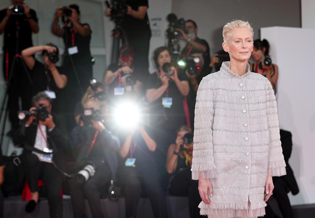 9月2日,在意大利威尼斯舉行的第81屆威尼斯國(guó)際電影節(jié)上,主競(jìng)賽單元影片《隔壁房間》演員蒂爾達(dá)·斯文頓亮相首映式紅毯。新華社記者 李京 攝