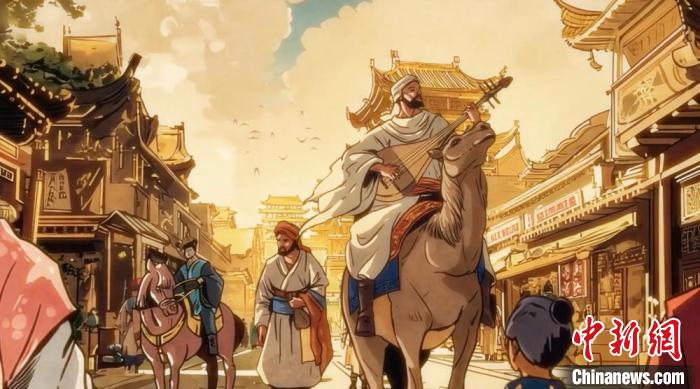 “漫畫中國”系列作品之一的《唐三彩駱駝?shì)d樂俑上的粟特人》片段畫面。(中國傳媒大學(xué)區(qū)域國別傳播研究院供圖)