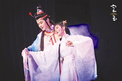 作為經(jīng)典IP改編的原創(chuàng)音樂劇,《寶玉》從創(chuàng)作過程到成型演出,持續(xù)引起外界廣泛關(guān)注和熱烈反響?!秾氂瘛氛缙涿浴皩氂瘛币暯窍虮娙虽侀_大觀園的離合悲歡。在有緣人對寶玉命運的循循引領(lǐng)下,逐一展露寶玉的覺醒、黛玉的哀婉風(fēng)骨、寶釵的隱忍綿長、王熙鳳的潑辣悲愴等人物特質(zhì)。全劇以歌入情,以舞動人,為觀眾呈現(xiàn)了一個紅樓獨特的音樂劇表達。對于耳熟能詳?shù)慕?jīng)典片段“寶黛共讀西廂”“黛玉葬花”“金玉良緣大婚”等,則通過“片段式敘事”與“閃回蒙太奇”手法串聯(lián)而起。