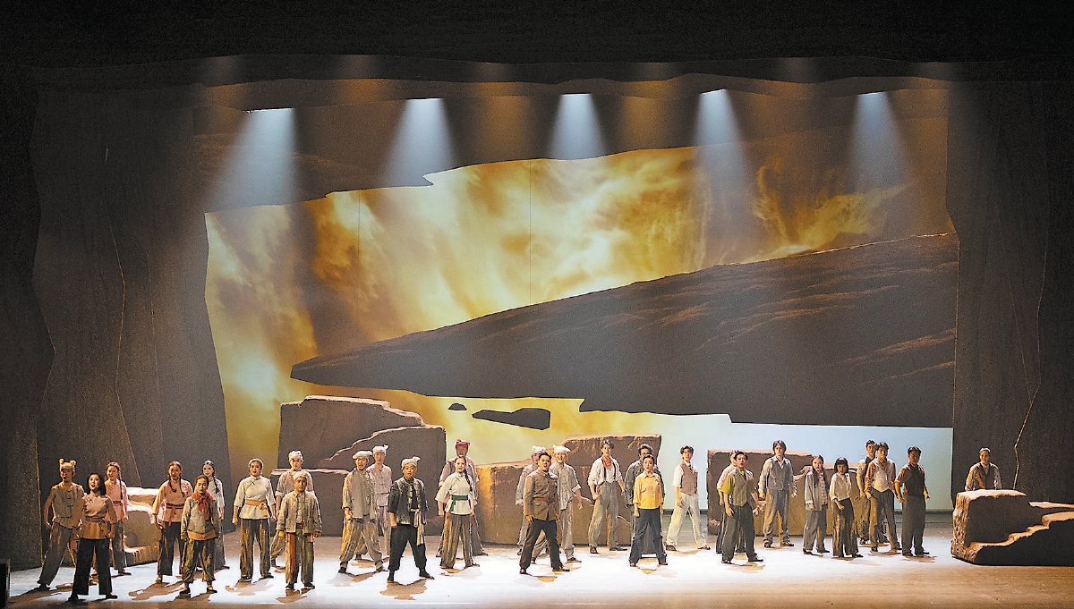 “我是哪一個(gè),你會(huì)看見(jiàn)我,對(duì)著天空呼喊,用生命高歌?!?1月21日晚,隨著“大戲看北京”2025展演季精品大戲單元?jiǎng)∧俊魳?lè)劇《高歌》在保利劇院首場(chǎng)演出落幕,觀眾與演員一同輕聲哼唱起來(lái)。這部由中國(guó)東方演藝集團(tuán)與榆林市榆陽(yáng)區(qū)人民政府聯(lián)合出品的音樂(lè)劇,將觀眾帶到1944年的陜北,在陜北民歌與流行、搖滾音樂(lè)的融合碰撞中,回望那段崢嶸歲月,收獲滿滿感動(dòng)。