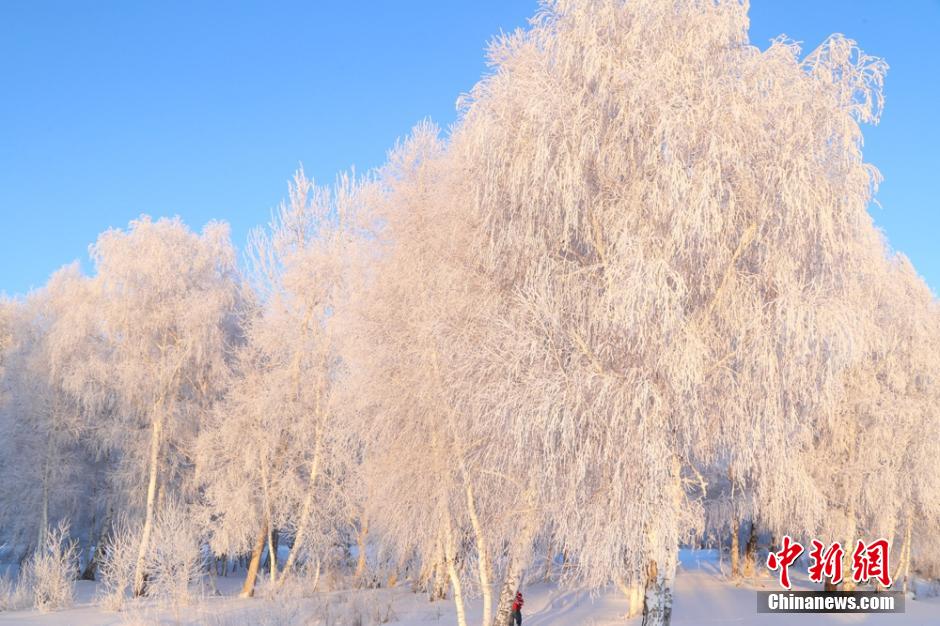 連日來(lái),新疆阿勒泰地區(qū)遭遇十年來(lái)罕見(jiàn)強(qiáng)降雪,雪后初霽,氣溫漸降。1月4日,受超低溫天氣的影響,阿勒泰哈巴河白樺林出現(xiàn)大面積霜掛美景,晶瑩剔透,潔白無(wú)瑕,銀裝素裹,成為一道道美麗的風(fēng)景線。 謝師民 攝