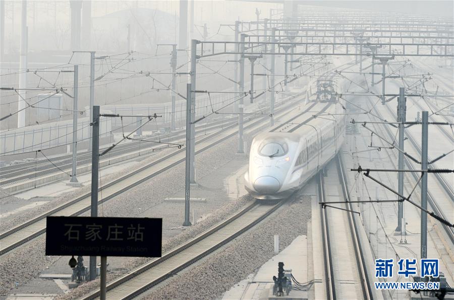 一輛動車組列車駛離石家莊火車站(1月9日攝)。 1月10日零時(shí)起,全國鐵路實(shí)行新的列車運(yùn)行圖,增開旅客列車285.5對,其中增開動車組列車281.5對。運(yùn)行圖調(diào)整后,全國鐵路開行旅客列車總數(shù)達(dá)到3142對,其中動車組列車1980.5對。新華社記者 牟宇 攝