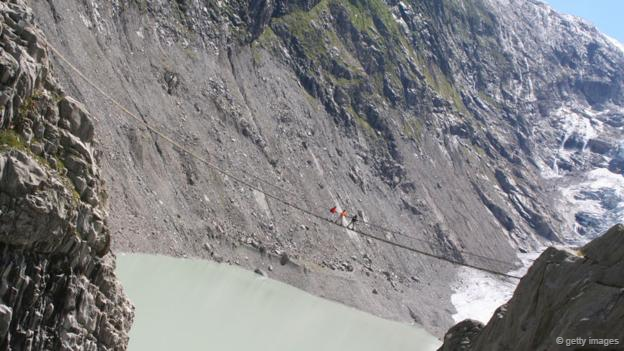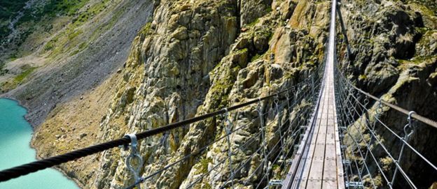 在所有懸索橋中,最令人驚心動(dòng)魄的應(yīng)該就是特里夫特懸索橋了。該橋長170米,跨伯爾尼高地的特里夫特斯湖,湖面與橋之間無任何連接,湖光山色冰川美景盡收眼底,每年吸引著成千上萬名渡橋者前來游覽。