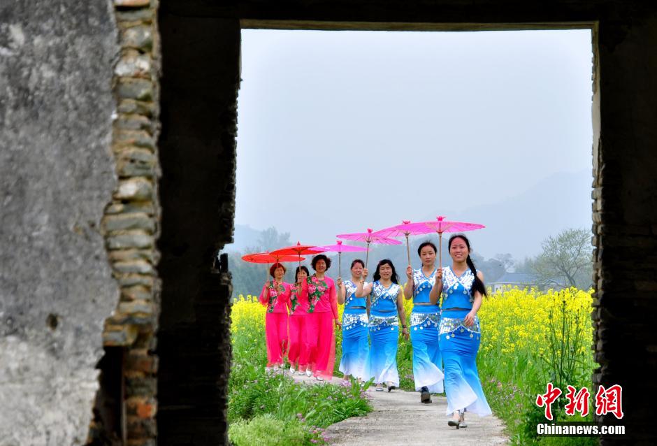 3月20日,江西省德興市??阪?zhèn)杜村婦女在田間花海“走秀”。當(dāng)日,江西德興市??阪?zhèn)杜村一批家庭婦女以千畝油菜花海為舞臺(tái),展示自己的才藝形象,希望宣傳家鄉(xiāng)的自然生態(tài)與人文歷史,擴(kuò)大旅游知名度和影響力。德興市??阪?zhèn)杜村交通便利,自然風(fēng)光優(yōu)美,村內(nèi)有歷史古跡和名木古樹(shù)。 胡敦煌 攝