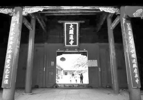 鐘樓上懸吊的大銅鐘叫幽冥鐘,也叫長鳴鐘,鑄造于明天啟年間(1612-1627年),鐘身高八尺,最大外徑五尺,厚三寸,鐘口邊緣成蓮花瓣形狀,外皮刻有楷書佛經(jīng)一部,共有一萬多字。這口銅鐘是五臺山寺廟中最大的鐘,據(jù)說重九千九百九十九斤。穿過鐘樓門洞,沿石鋪道右拐左折,便是顯通寺的山門。山門看上去豪雄而典雅,兩旁豎著石碑,碑身一邊是大草“龍”字,一邊是大草“虎”字,自由揮灑,一筆寫就,字形具有龍虎的形象,為雷雨居士所書。據(jù)說,佛寺選址講求風(fēng)水,除了靠山之外,總以左青龍、右白虎為佳,顯通寺山門兩側(cè)無此二山,故立此二碑為補。