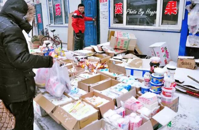 當然漠河那么冷,很多東西是不用放在室內賣的,比如冰棍、雞鴨魚肉、還有部分水果,天然的冰箱。
