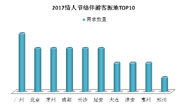 客源分布方面,廣州、北京、常州、成都、長沙、延安、淮安、惠州、鄭州等是在線結(jié)伴出游需求最為旺盛的十個城市。