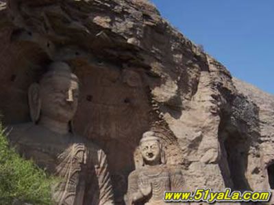 云岡石窟位于山西省大同市以西16公里處的武周山南麓。石窟始鑿于北魏興安二年(公元453年),大部分完成于北魏遷都洛陽之前(公元494年),造像工程則一直延續(xù)到正光年間(公元520~525年)。石窟依山而鑿,東西綿亙約1公里,氣勢恢弘,內容豐富?,F(xiàn)存主要洞窟45個,大小窟龕252個,石雕造像51000余軀,最大者達17米,最小者僅幾厘米??咧衅兴_、力士、飛天形象生動活潑,塔柱上的雕刻精致細膩,上承秦漢(公元前221年~公元220年)現(xiàn)實主義藝術的精華,下開隋唐(公元581~907年)浪漫主義色彩之先河,是世界聞名的石雕藝術寶庫之一。1961年國務院公布為全國重點文物保護單位,2001年被列為世界文化遺產。