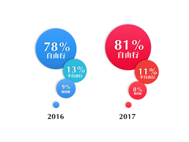 “愛自由”早已是年輕群體的標(biāo)簽,81%的他們更愿意以自由行的方式出境旅行。與此同時(shí),在游玩方式上,“樂高組件式”預(yù)訂越來(lái)越受青睞,租車在境外自駕游的游客,2017年比2016年上漲了337%,簡(jiǎn)直比自由更自由。