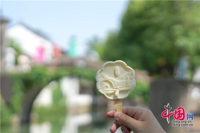 冰激凌融化的第一口,“古牌樓”棒棒糖戴著蝴蝶結(jié)突發(fā)奇想,發(fā)著光:“姑蘇繁華,最明周莊”。