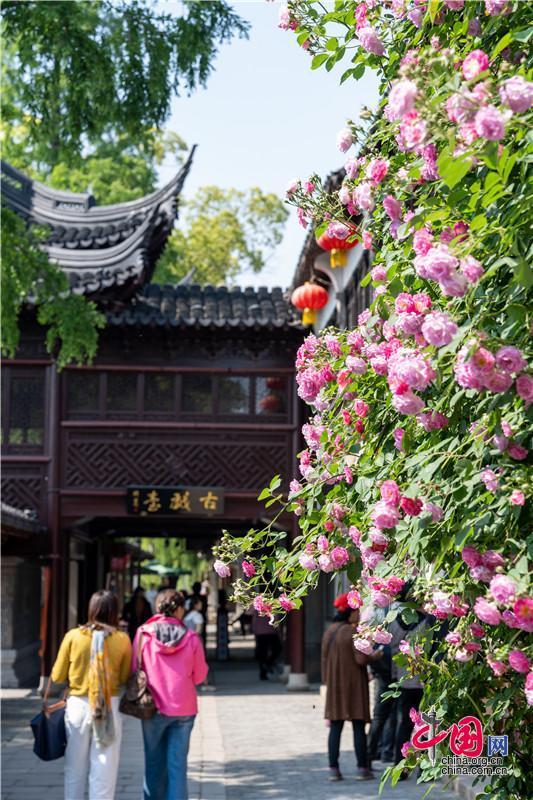 “我想讓風(fēng)也開花......”許下的愿望,在逸飛之家,粉黛紛飛留下周莊最深刻的記憶。滿架薔薇一院香,微風(fēng)簾動生活家。古戲臺外,一樹繁花沾了牡丹亭的軟糯,水磨腔合著微風(fēng)拂過,醉了游人。