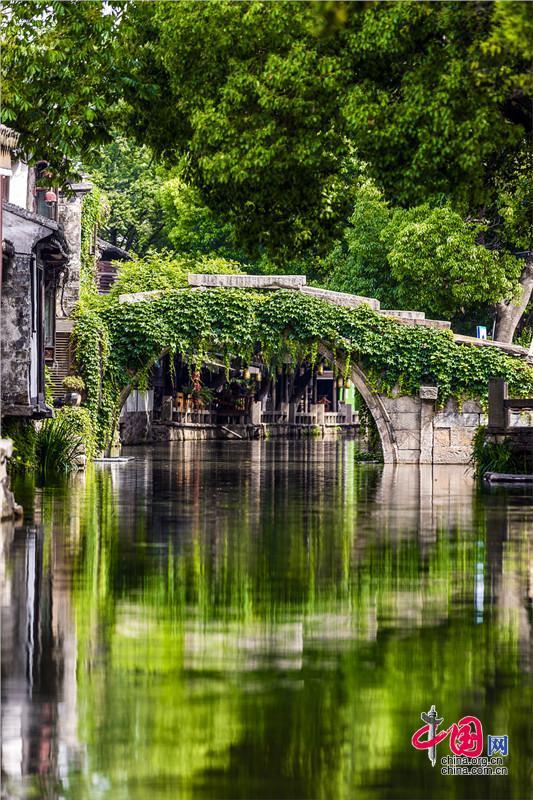 五月的花不趕場,初夏的風(fēng)微微涼。一陣吹來一墻綠,小鎮(zhèn)是初戀的味道,綠色鋪滿了雙橋。