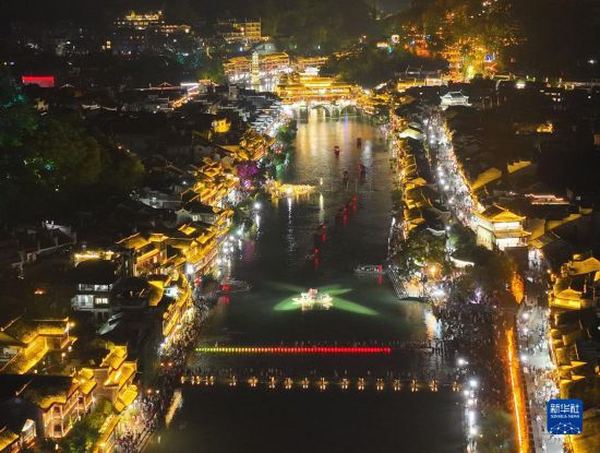 湖南省湘西土家族苗族自治州鳳凰古城持續(xù)推進(jìn)旅游環(huán)境提質(zhì)升級(jí),規(guī)范旅游市場(chǎng),完善旅游服務(wù)設(shè)施。每到夜晚,鳳凰古城沱江兩岸燈光璀璨,美景如畫,吸引眾多游客前來(lái)感受“夜鳳凰”的獨(dú)特魅力。