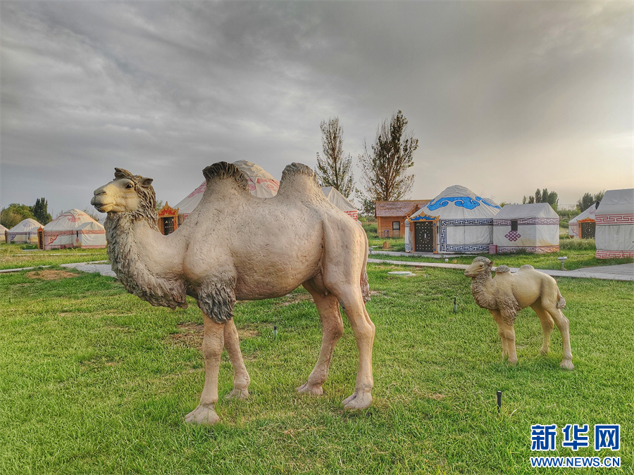 造型獨特的雕塑與蒙古包相互映襯,盡顯草原文化魅力。
