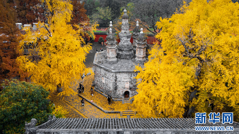 近日,湖北襄陽廣德寺內(nèi)的銀杏古樹迎來最佳觀賞期,為寒冷冬日添上一絲暖意。