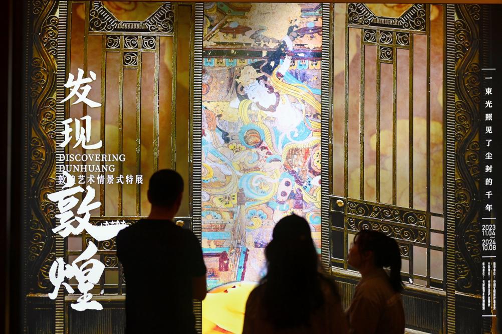 觀眾在天津數(shù)字藝術(shù)博物館參觀“發(fā)現(xiàn)敦煌——敦煌藝術(shù)情景式特展”。新華社記者 趙子碩 攝
