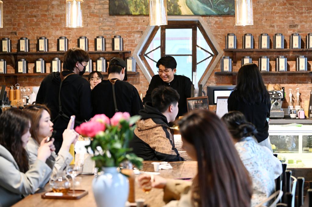 在天津市和平區(qū)五大道樘院內(nèi),一家新開業(yè)的茶飲店內(nèi)顧客絡(luò)繹不絕。新華社記者 李然 攝