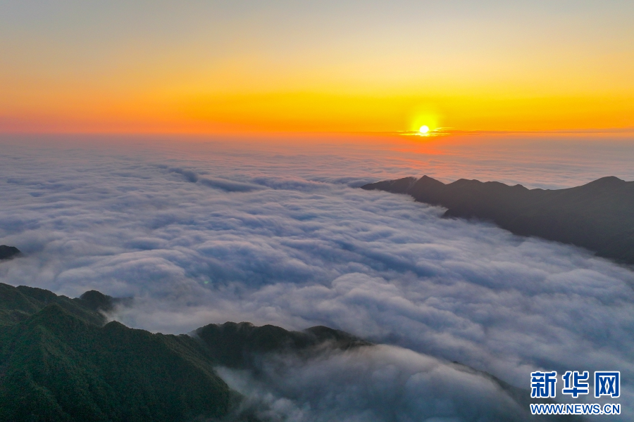日出群山,宛如一幅水墨畫卷(視頻截圖)。新華網(wǎng)發(fā)(大關(guān)縣融媒體中心供圖)