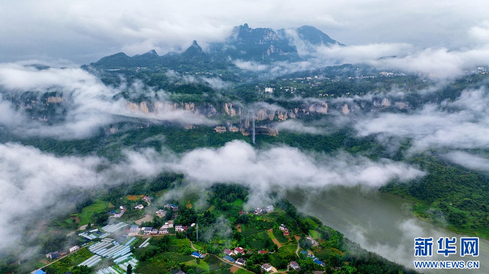 近日,湖北省恩施土家族苗族自治州恩施市新塘鄉(xiāng)清江紅花峰林流域,云霧繚繞,煙雨迷蒙,民居、田園、瀑布與清江山水相互映襯,構(gòu)成一幅美麗畫(huà)卷。近年來(lái),恩施州生態(tài)環(huán)境不斷改善,優(yōu)美的自然風(fēng)光和豐厚的人文底蘊(yùn),吸引越來(lái)越多的人前來(lái)觀光旅游。(文林、張遠(yuǎn)明)