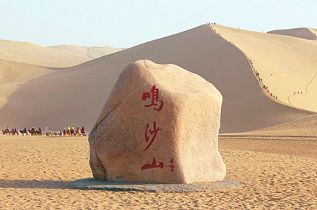 在出發(fā)下一站鳴沙山之前,請做好參加“萬人演唱會”的心理準備,抵達之后,你會看到沙漠上雖不擁擠但人流密集的游客,這種氛圍感簡直太奇妙。