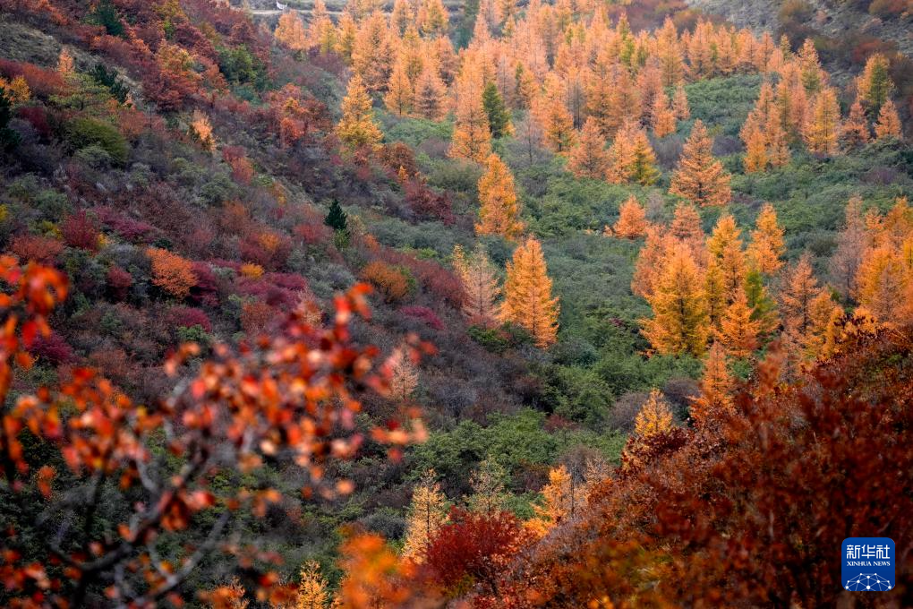 這是10月18日在寧夏固原市西吉縣大寨山林場(chǎng)拍攝的秋景。