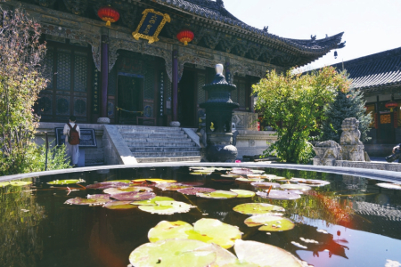 五臺山佑國寺始建于元代,被譽為“現(xiàn)代石雕藝術(shù)寶庫”,圖為供奉釋迦牟尼的大雄寶殿。
