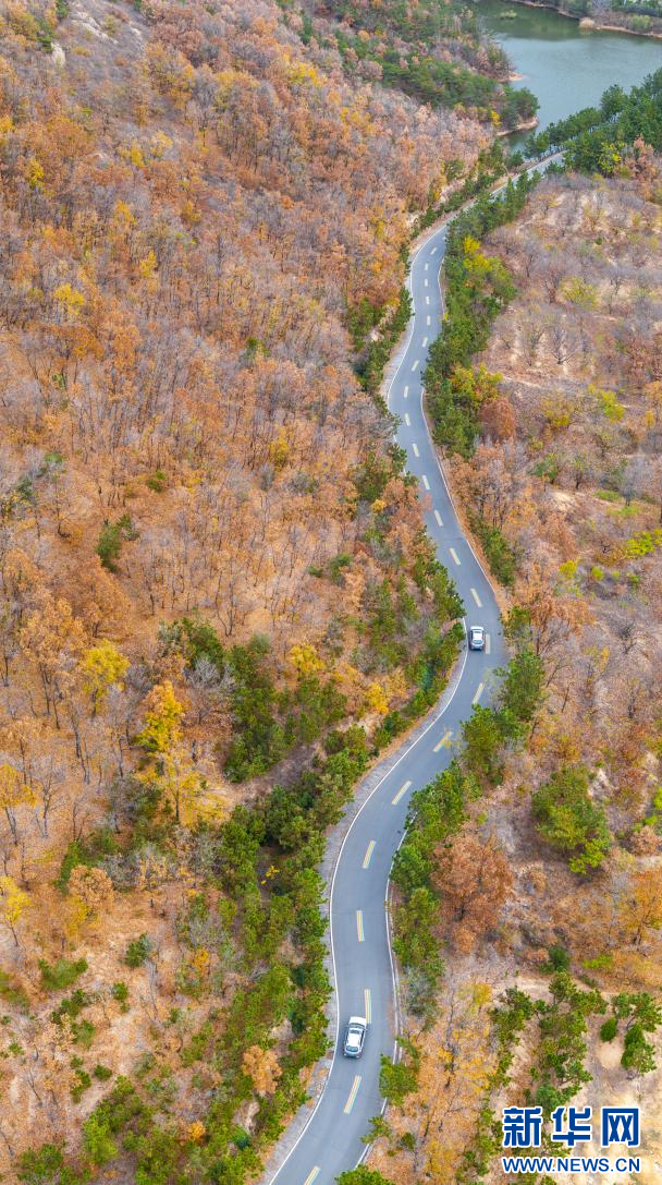 盤山公路仿佛一條飄帶纏繞在山間(無人機照片)。新華網(wǎng)發(fā)(薄林 攝)