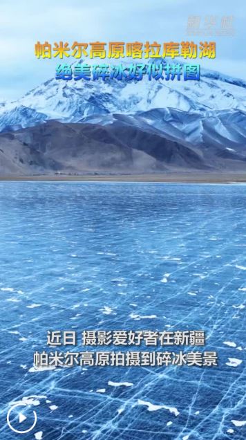 近日,攝影愛好者在新疆帕米爾高原拍攝到碎冰美景。慕士塔格峰腳下,結(jié)冰的喀拉庫勒湖好似一幅巨型拼圖,一塊塊冰棱猶如鏡面,閃耀著藍色的光芒。