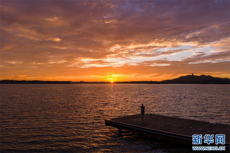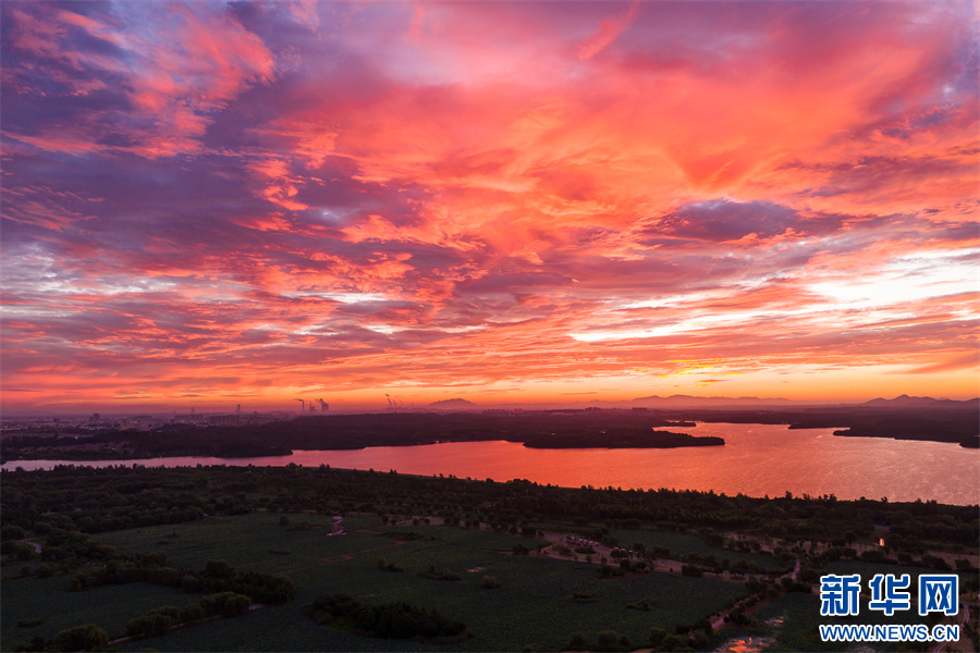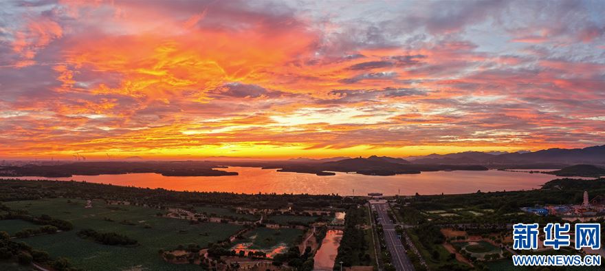 近日,安徽省池州市平天湖上空出現(xiàn)絕美朝霞景觀。新華網(wǎng)發(fā)(饒治國(guó) 攝)