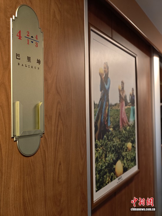 穿行在車廂中間,處處可見新疆的濃濃風(fēng)情。秉持“一車一風(fēng)景”的理念,車廂內(nèi)每個(gè)房間均以新疆知名景區(qū)命名,房間門口還張貼著對應(yīng)景點(diǎn)的美食美景海報(bào),讓游客未至景區(qū),先浸風(fēng)情。