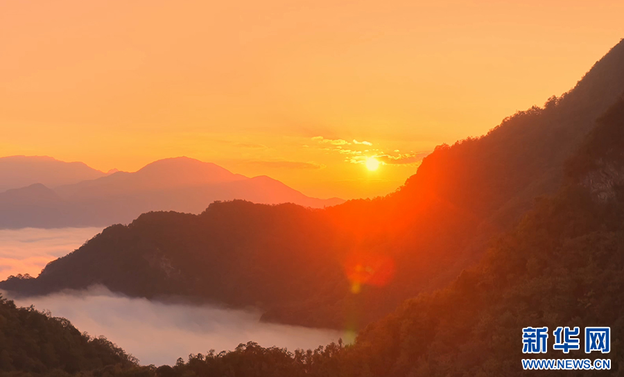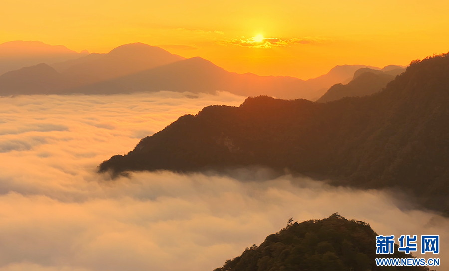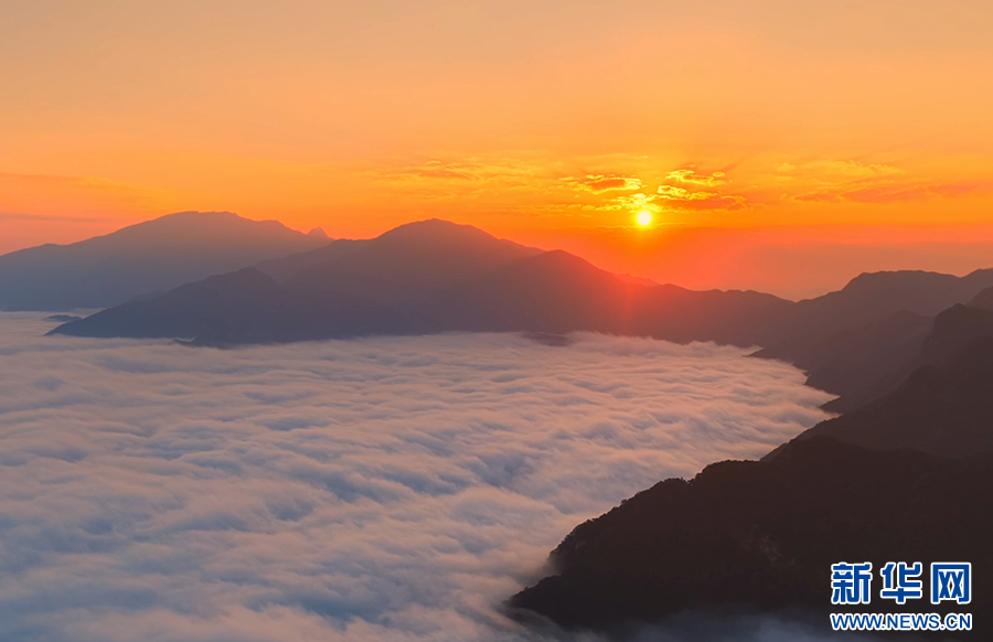 曙光初照,云海翻騰。近日,安徽省池州市石臺縣仙寓山景區(qū)在晨光中展現出一幅壯麗的日出云海畫卷。萬頃云濤在層巒疊嶂間奔涌流動,與朝霞金光交織成景,氣象萬千,蔚為壯觀。(王帆 攝)